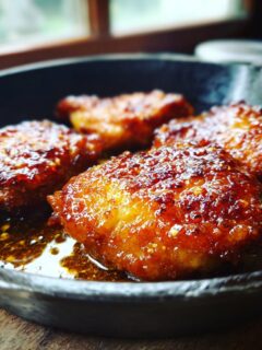 Skillet Honey Garlic Baked Chicken Thighs